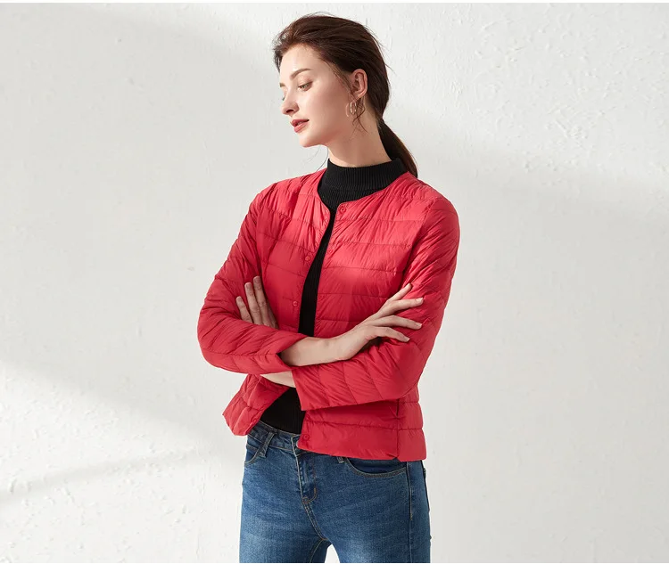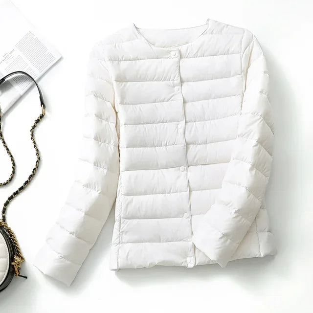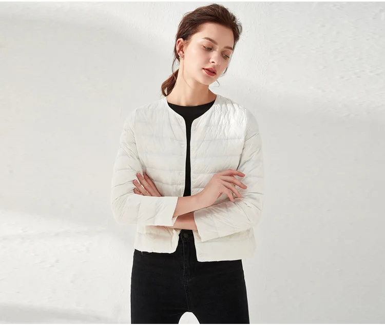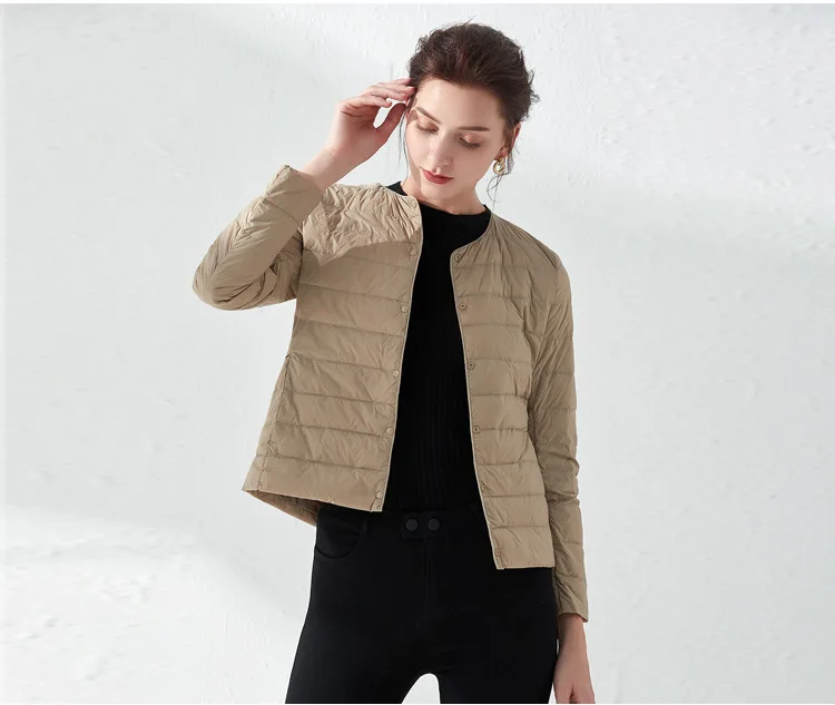 New Spring Winter Women Liner Warm Down Jackets Ultralight Collarless Portable Female Padded Parkas O-Neck Puffer Overcoat