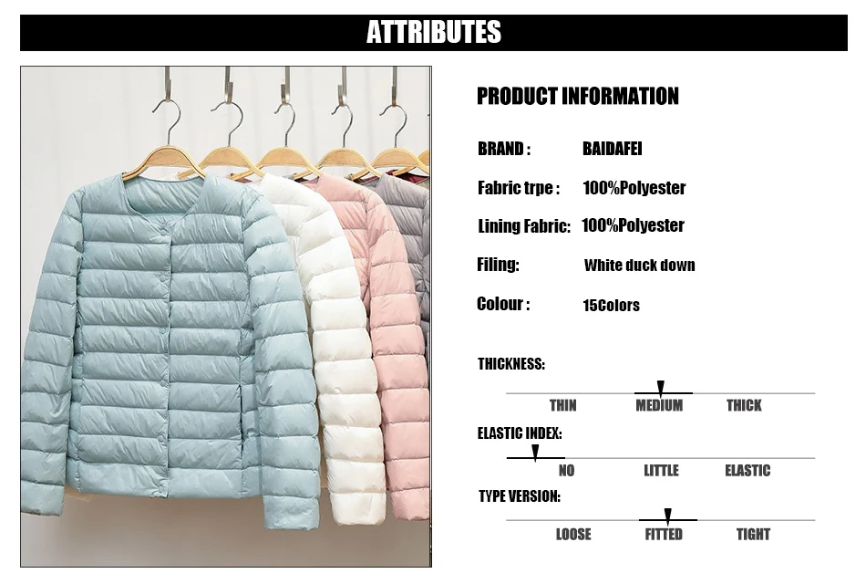 Spring Winter Women Liner Portable Female Padded Parkas Puffer Warm Down Jackets