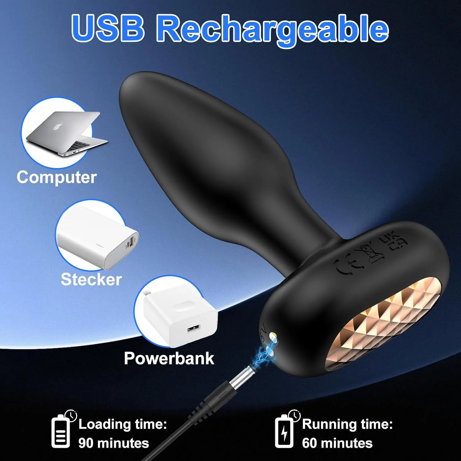 【Perfect Size & USB Rechargeable】This anal sex toy is designed in a portable perfect size, allowing you to have fun anytime and anywhere. The USB rechargeable battery and long battery will ensure you can play for about 1 hour.