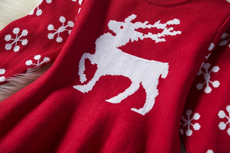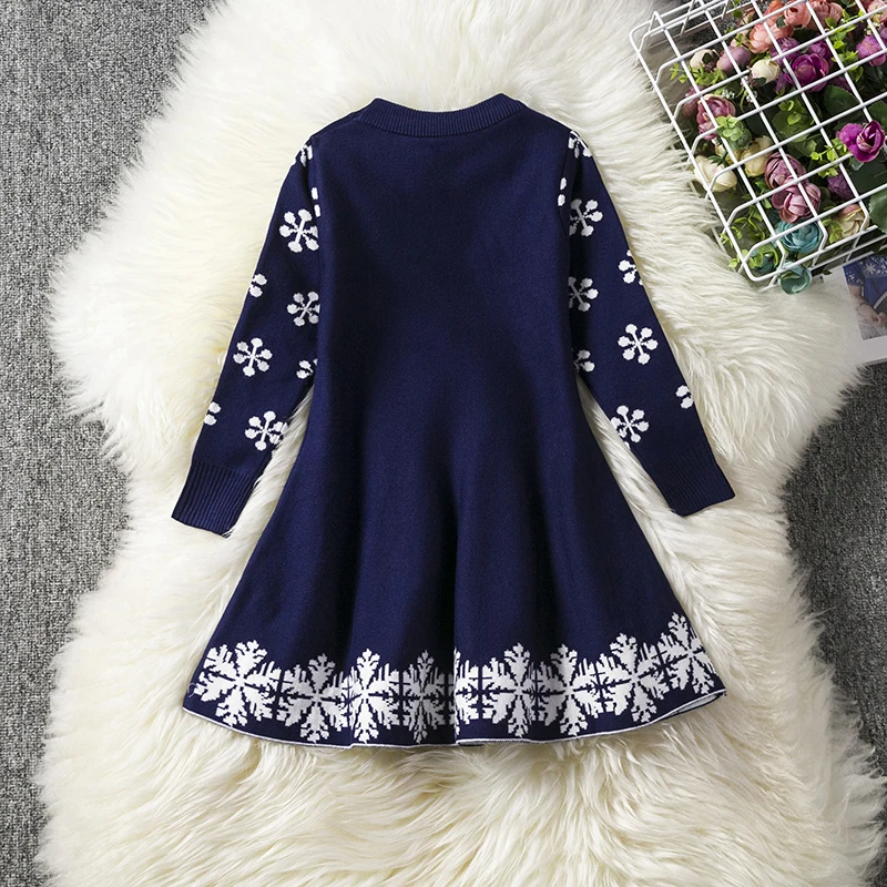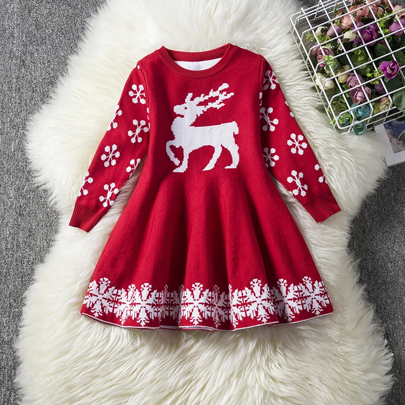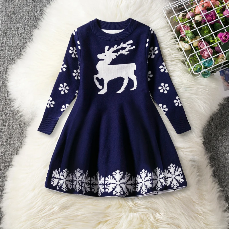 Girls Knitting Sweater Winter Autumn Full Sleeve Elk Christmas Dress