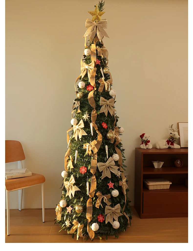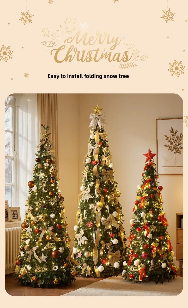 Glowing Christmas Tree Foldable Artificial Xmas Tree Decor Flocked Holiday Ornament for Shopping Mall Spacious Festival Display