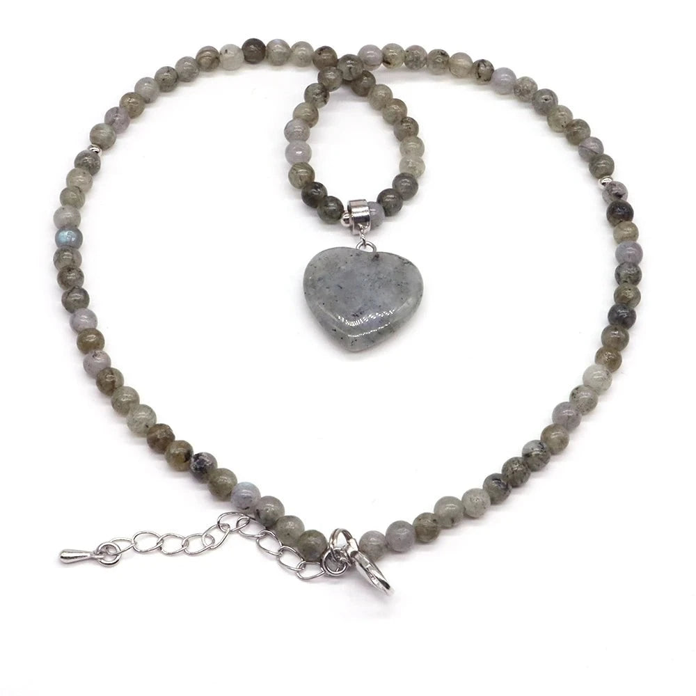 heart-shaped Gems Bead Chain Natural Stone Lapis Lazuli Necklace