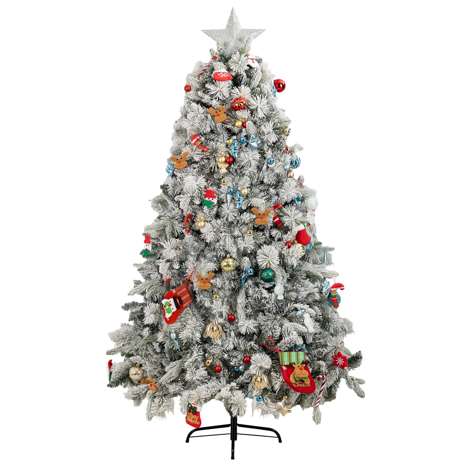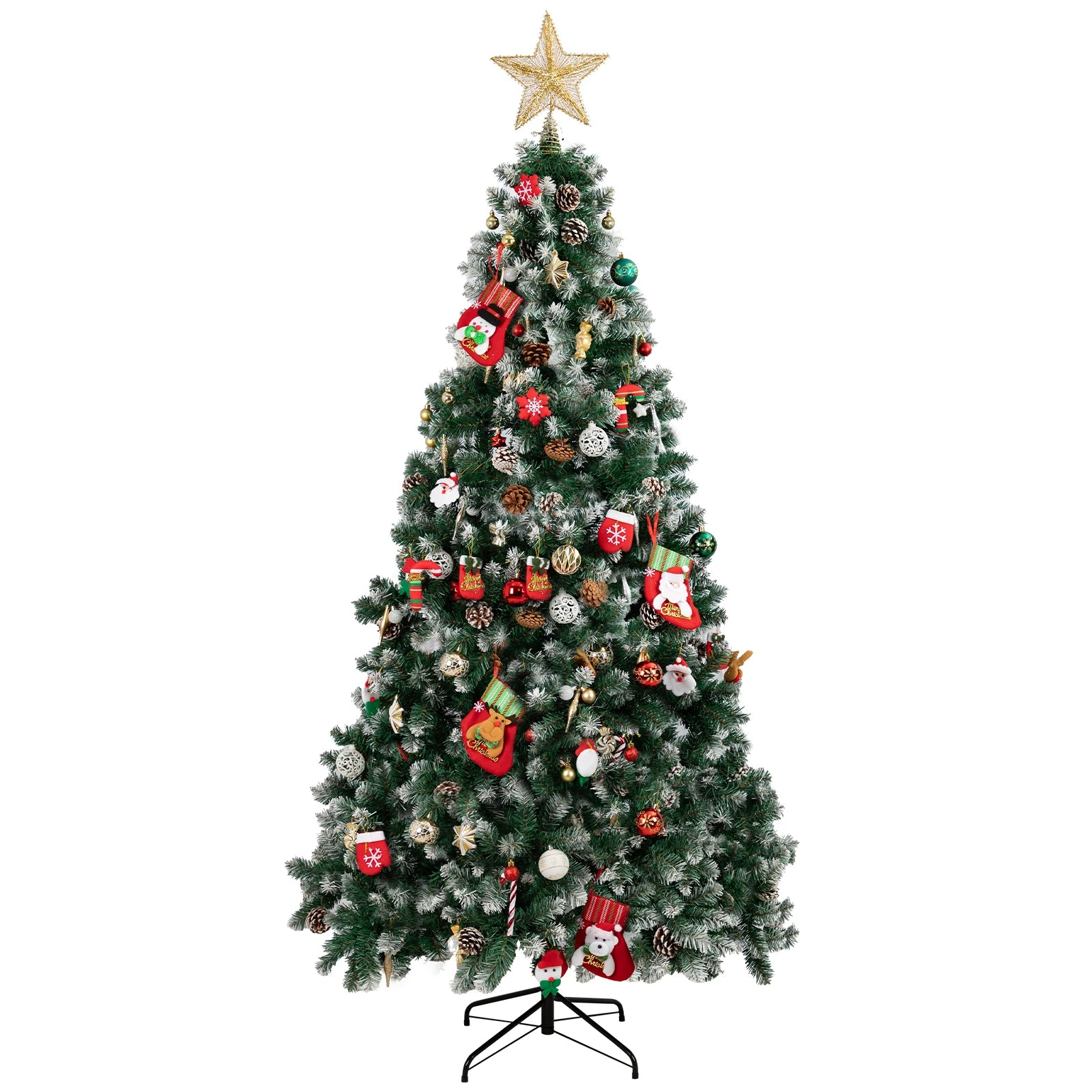 Artificial Flocked Christmas Tree with 800 Branch Tips, Snow Covered Full Xmas Tree