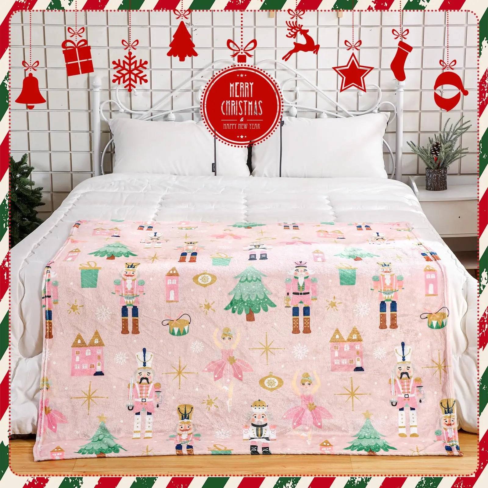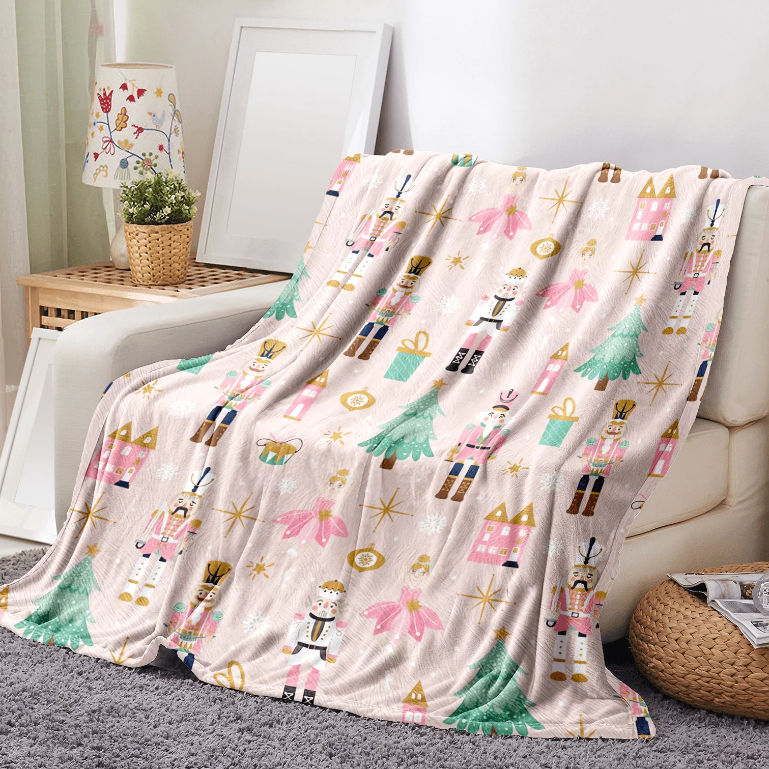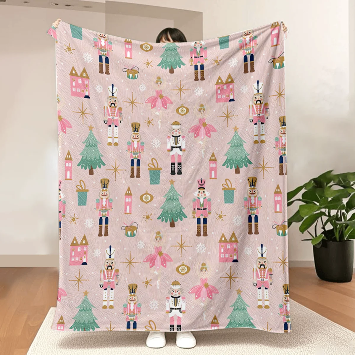 Pink Nutcracker Christmas Throw Blanket Cute Soft Warm Lightweight Christmas Blanket