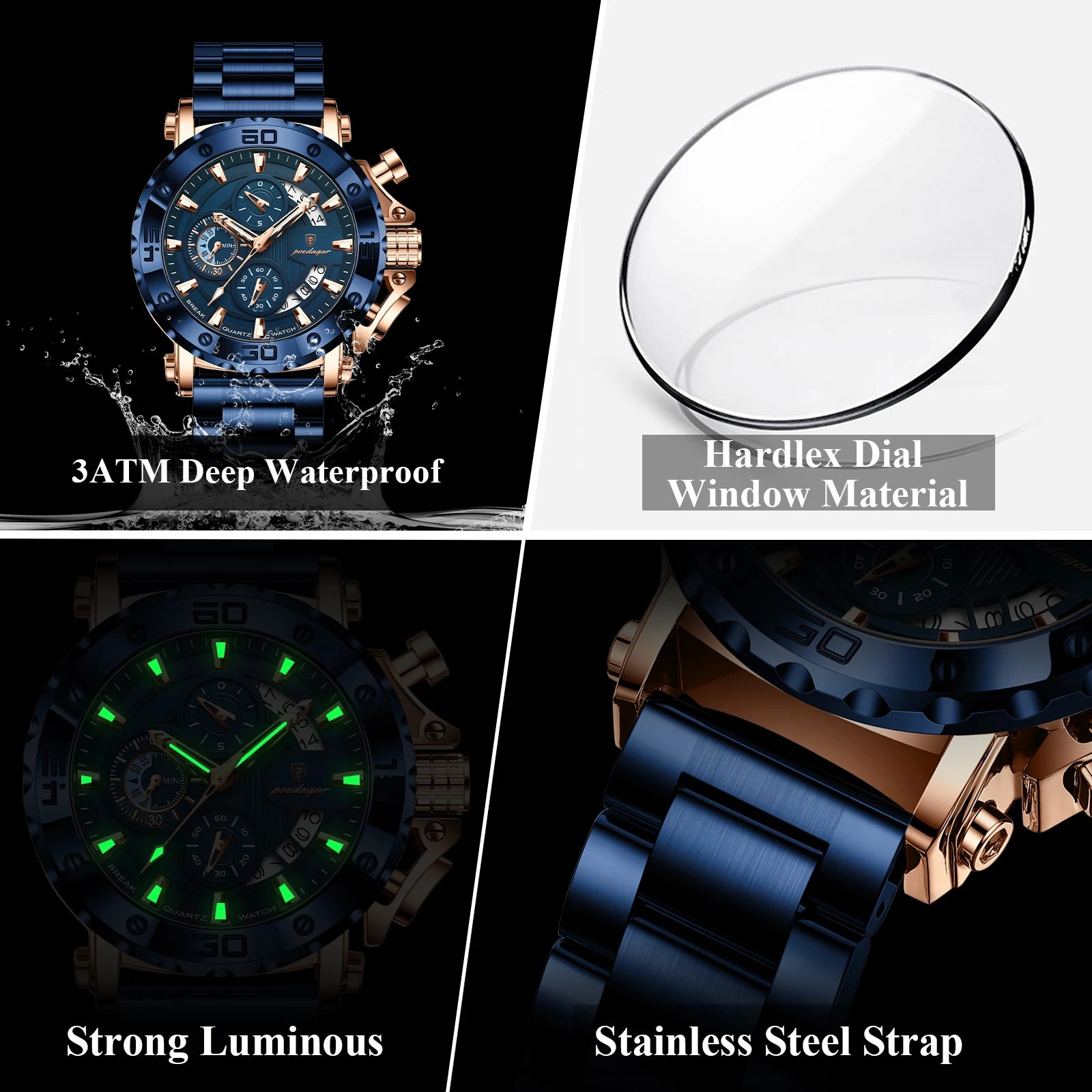 Feature: Luminous,Auto Date,Chronograph,Water-Resistance,swim,Luminous Hands