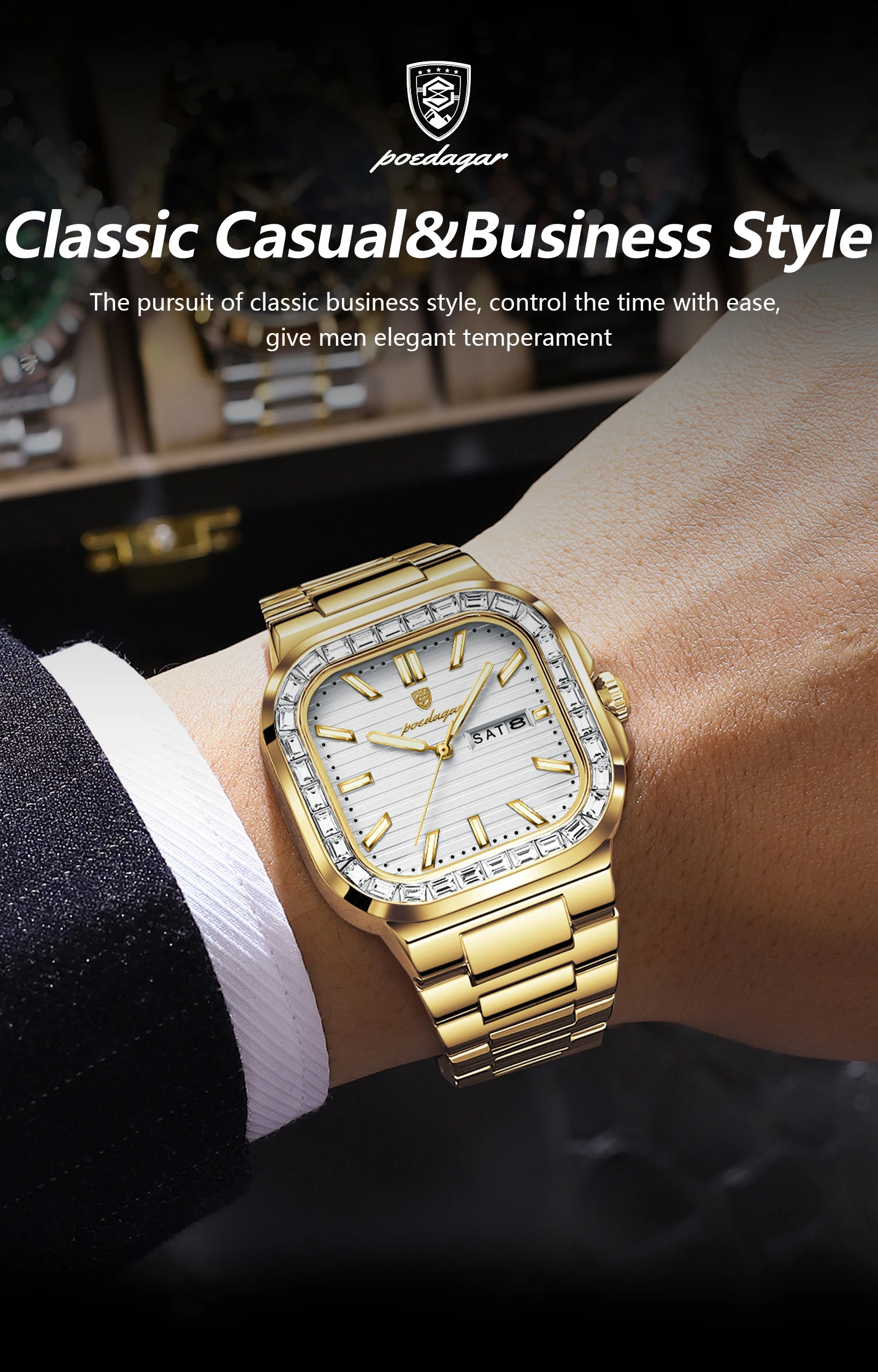 Feature: Luminous,Auto Date,Water-Resistance,swim,Week Display,Luminous Hands