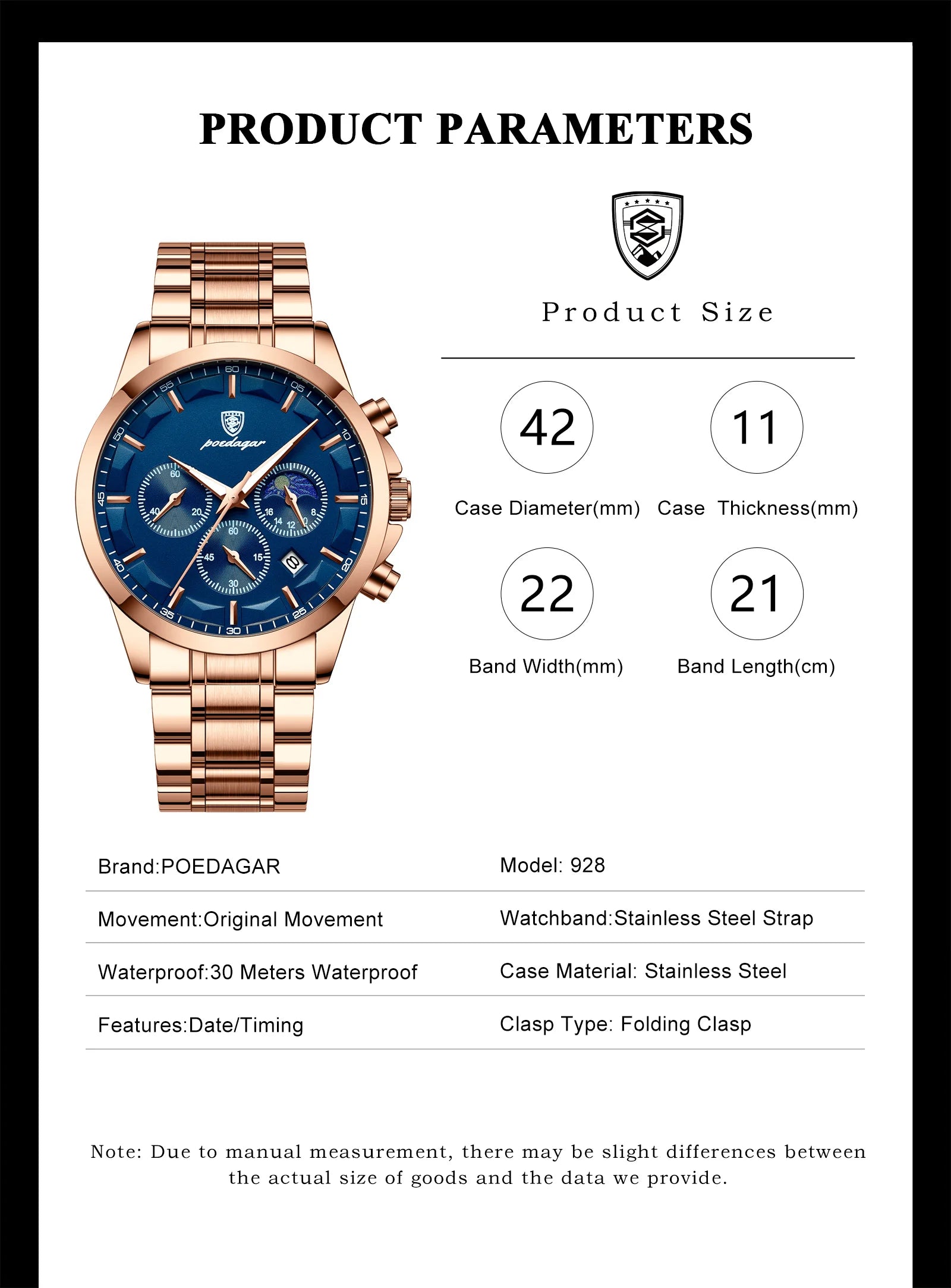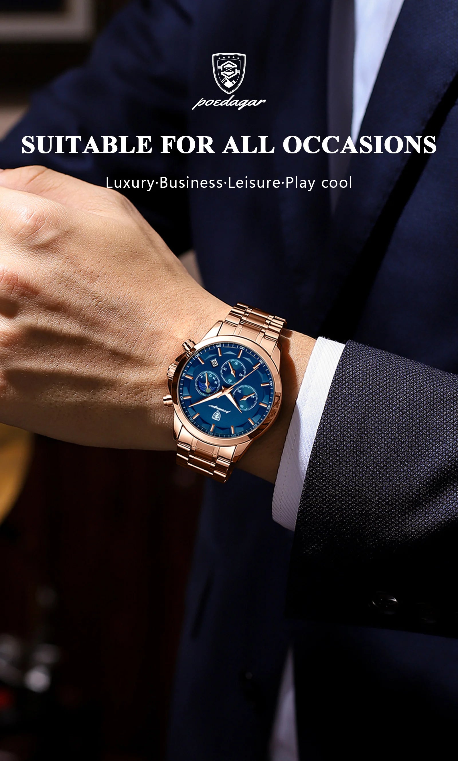 POEDAGAR Luxury Wristwatch Waterproof Luminous Chronograph Men Watch