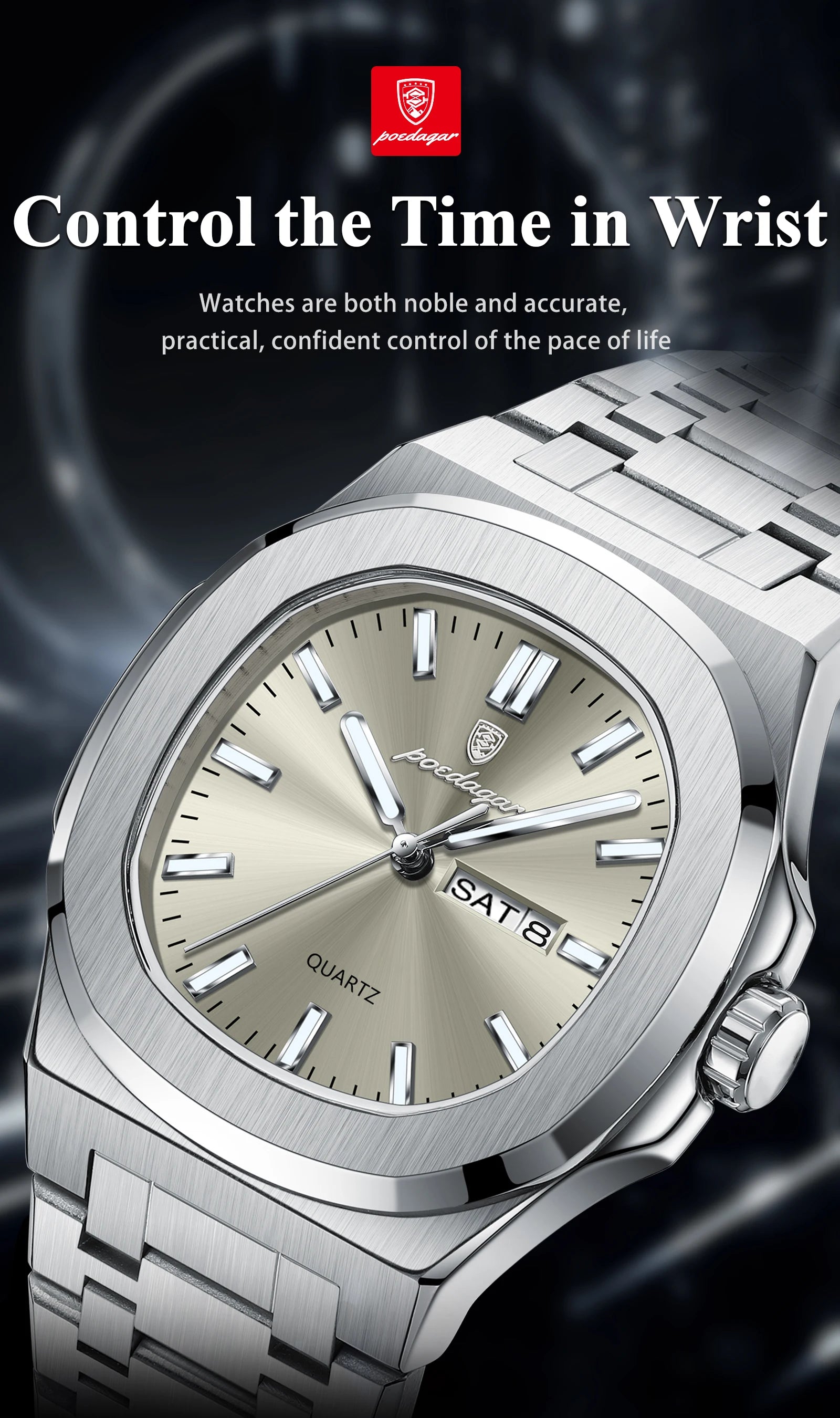 POEDAGAR Luxury Square Waterproof Stainless Steel Quartz Men's Watch