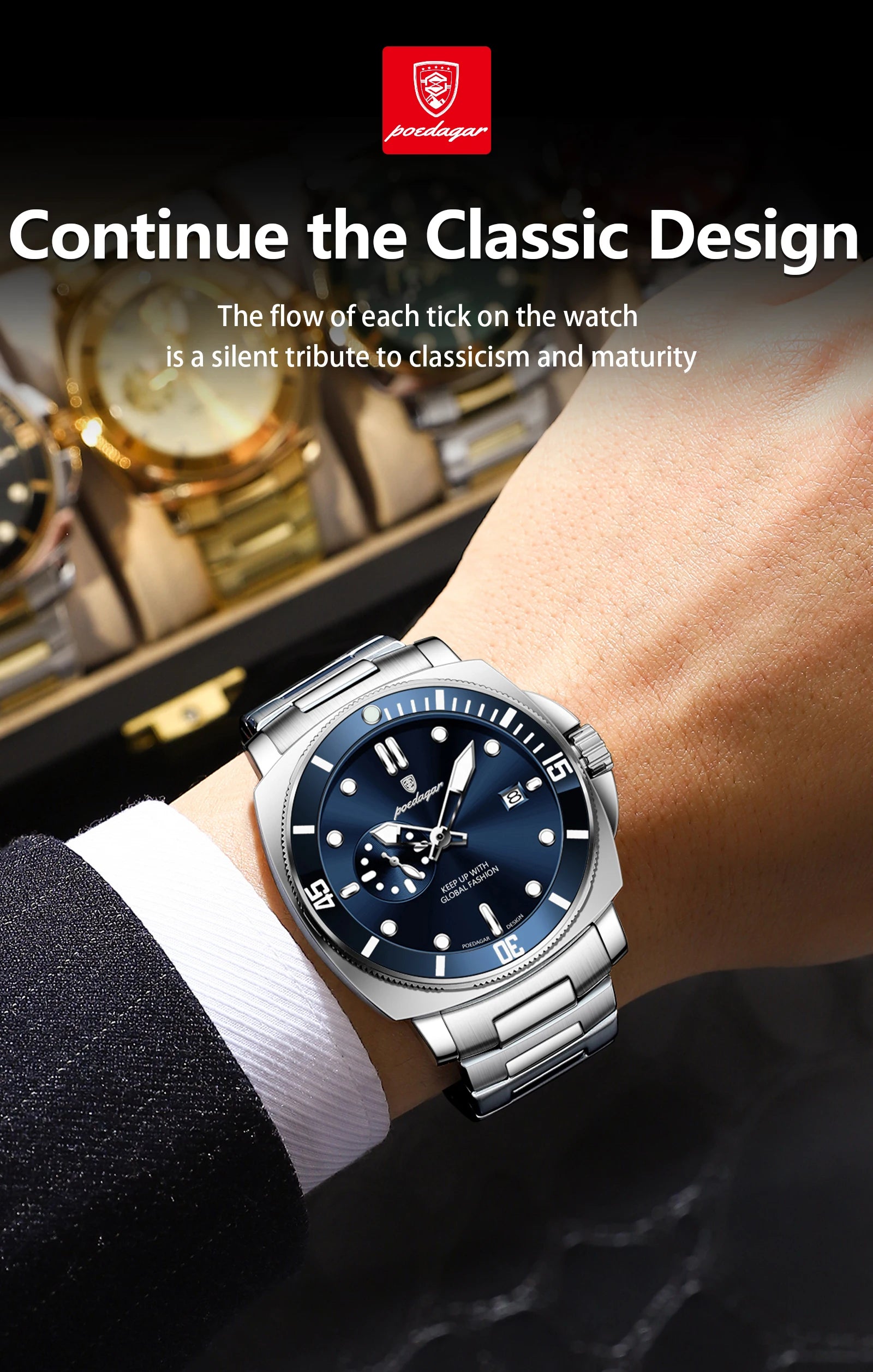 POEDAGAR Luxury Sports Wristwatch Luminous Waterproof Men Business watch