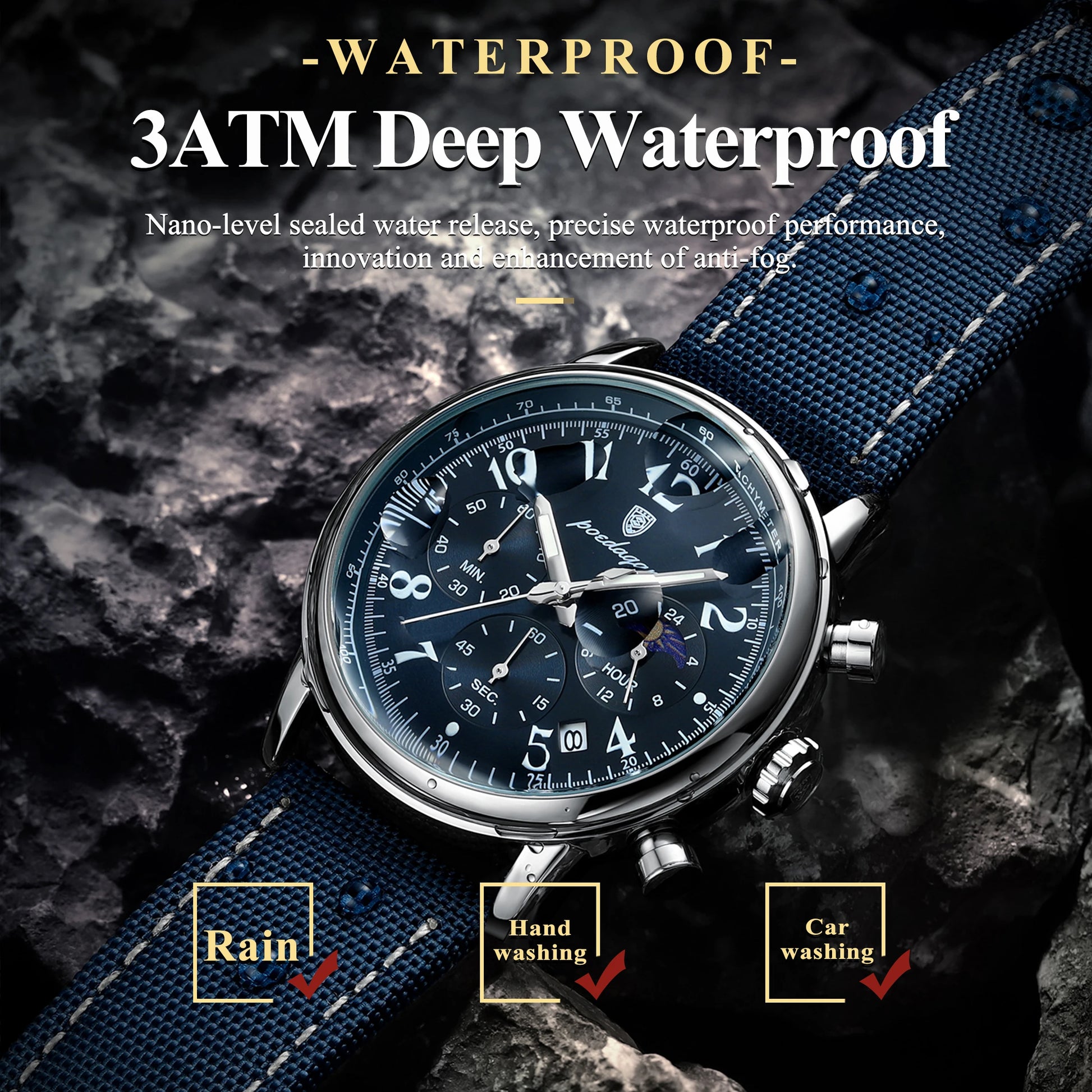 POEDAGAR Luxury Waterproof Luminous Chronograph Nylon Leather Wristwatch