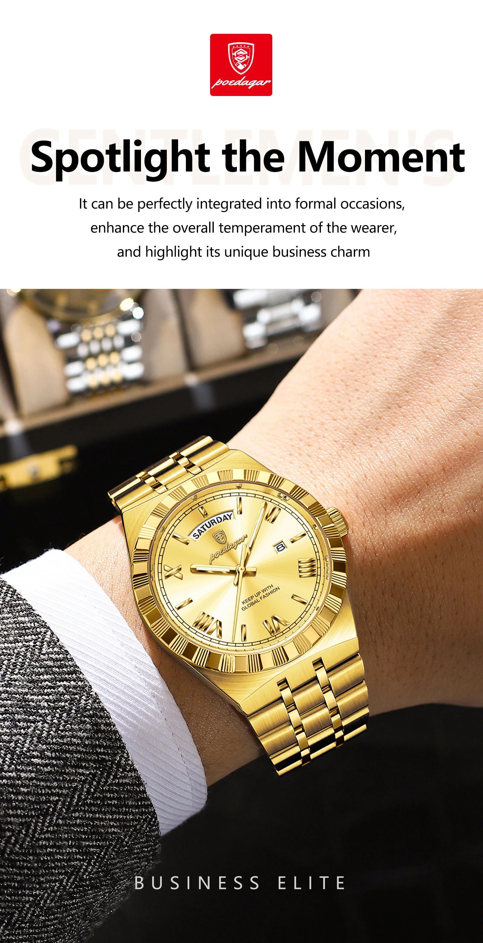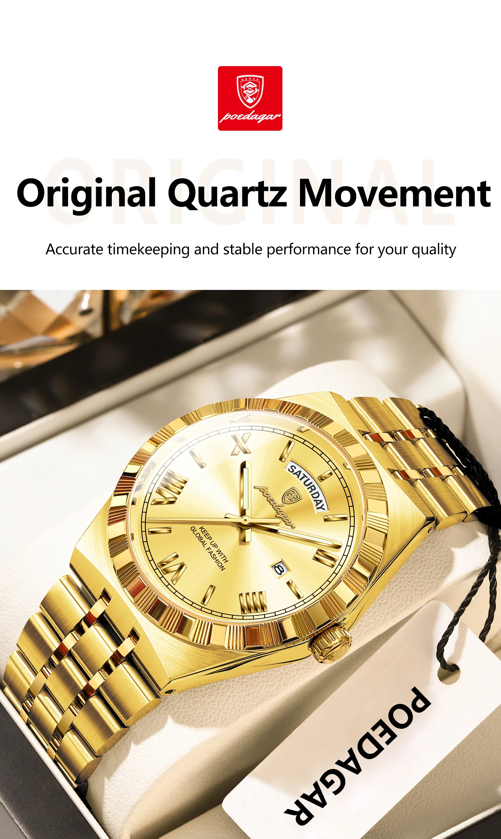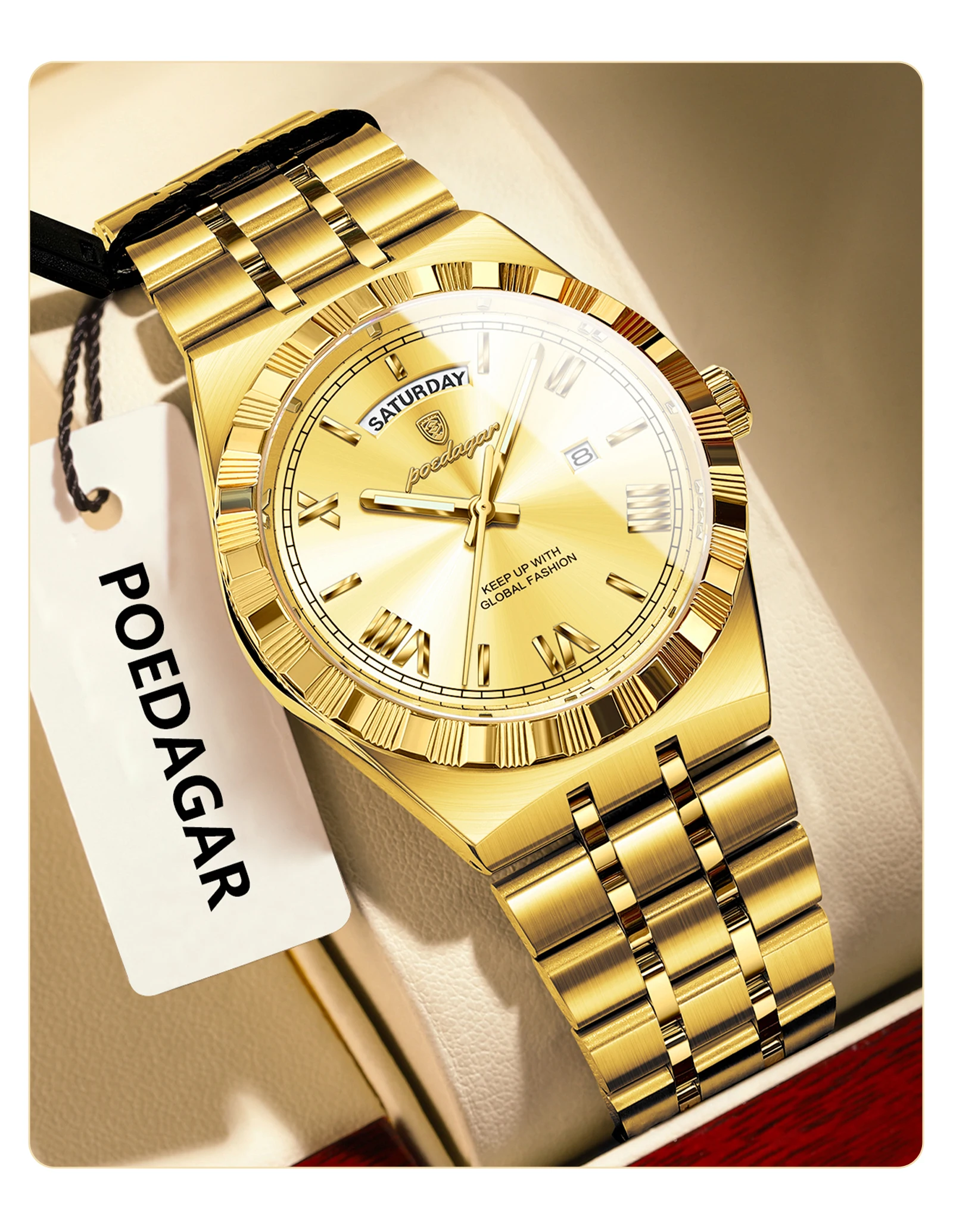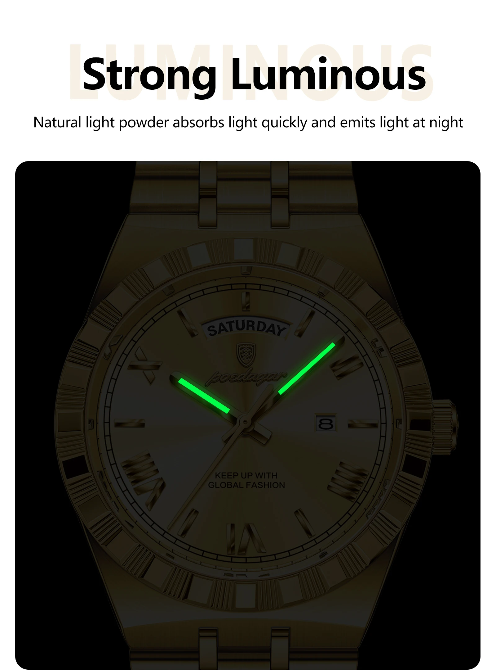POEDAGAR Original Luxury Man Watch Week Date Luminous Waterproof Watches