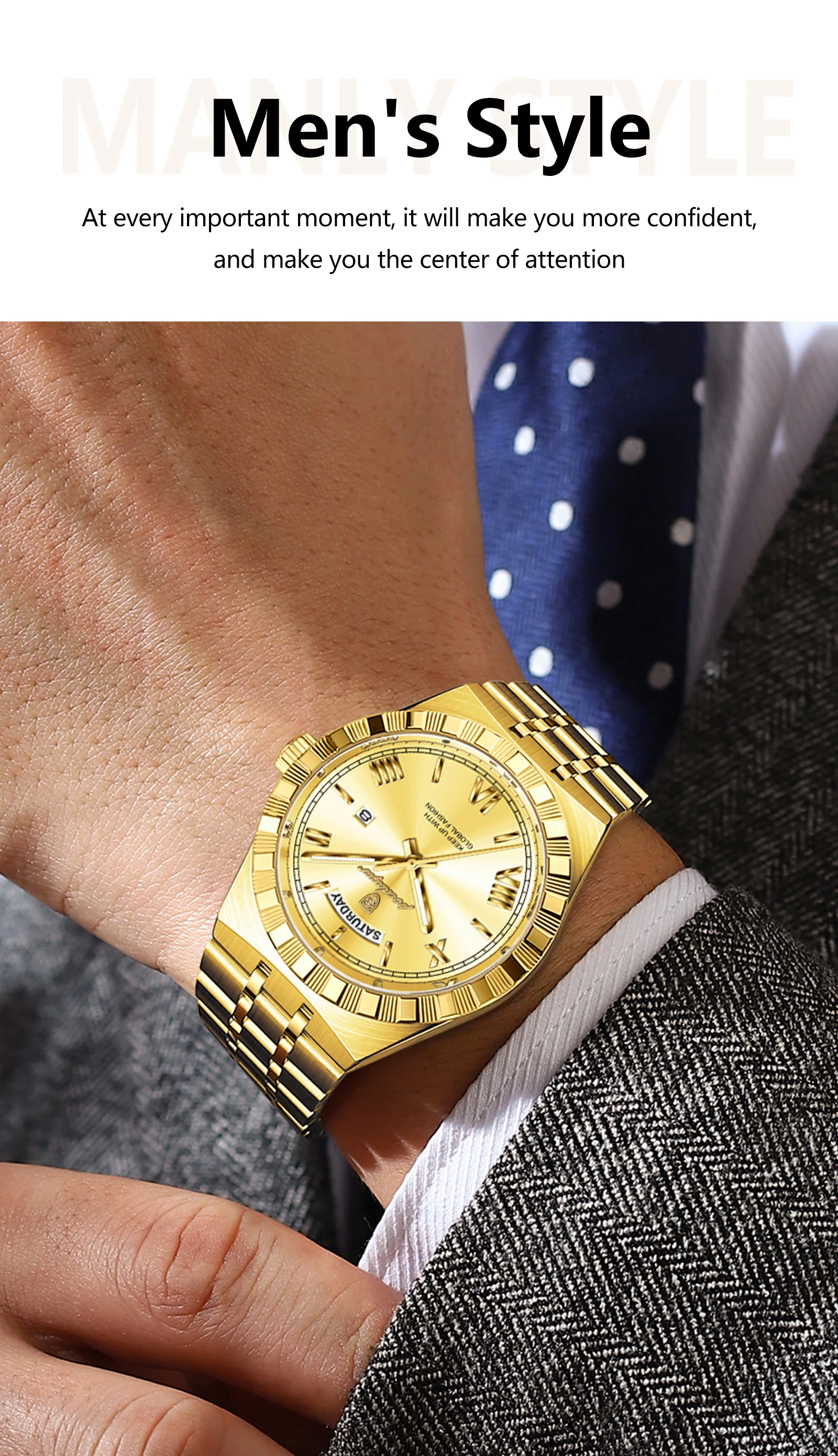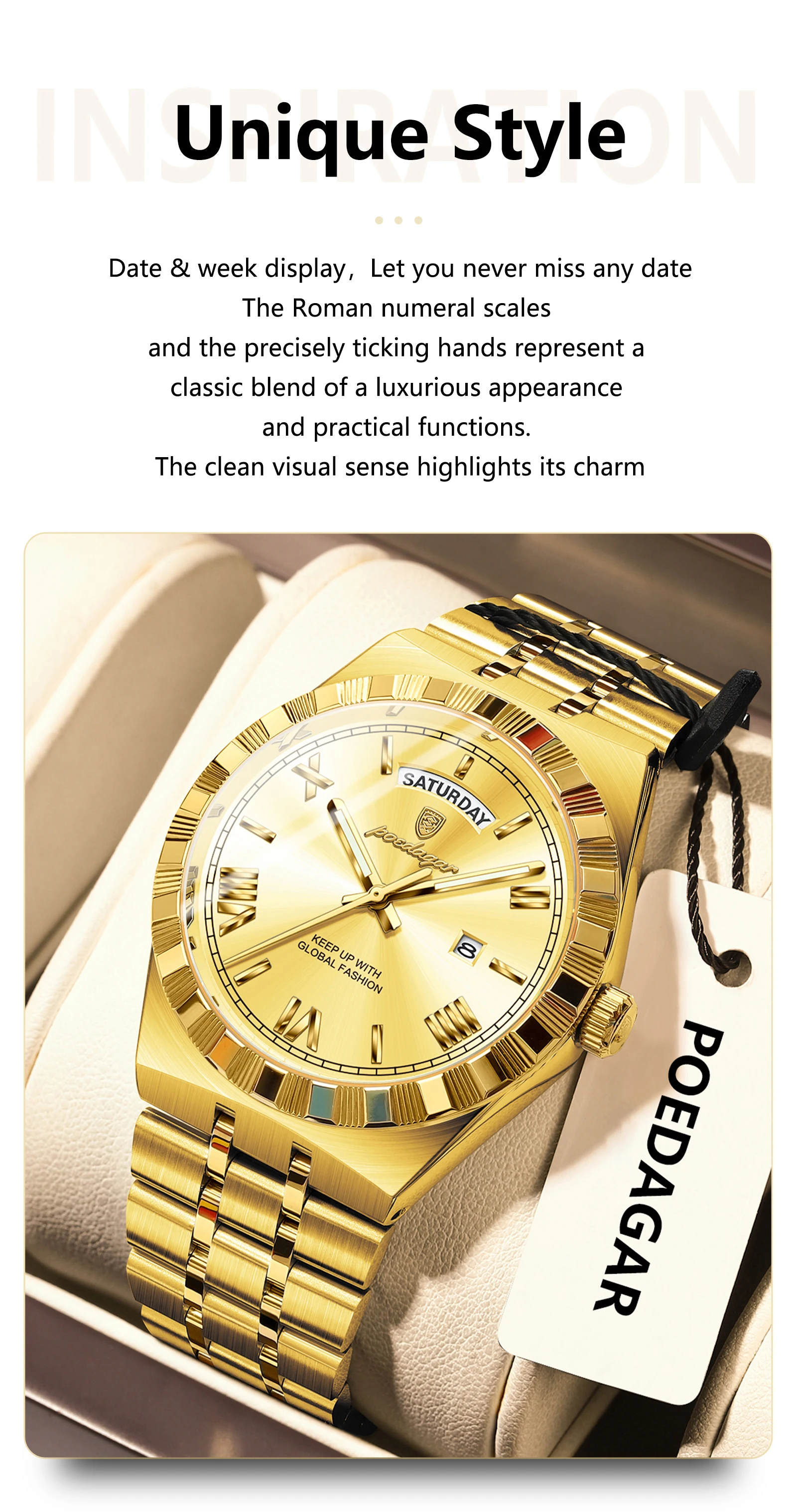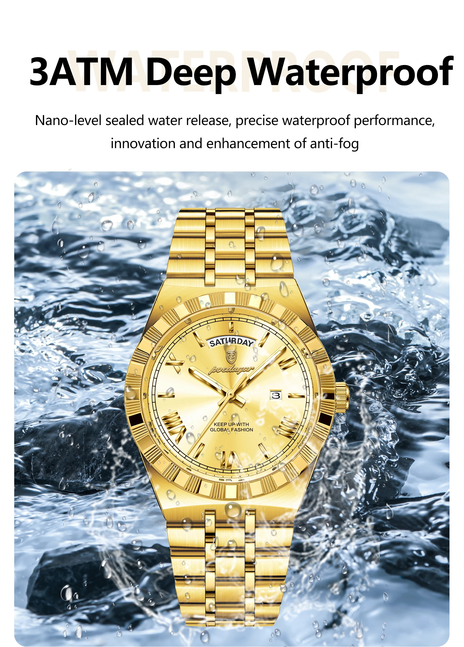 Feature: Auto Date,Water-Resistance,swim,Week Display,Luminous Hands