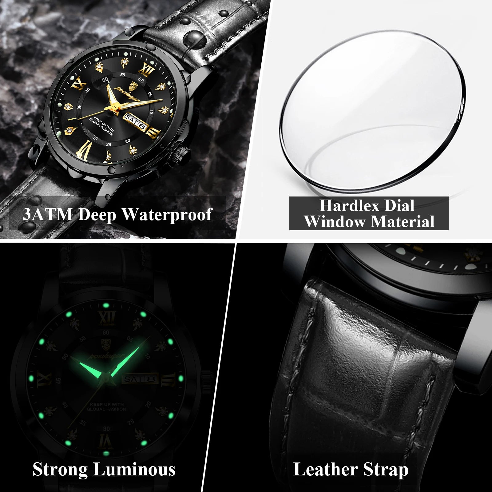 POEDAGAR Luxury Man Watch Waterproof Luminous Leather Men Wristwatch