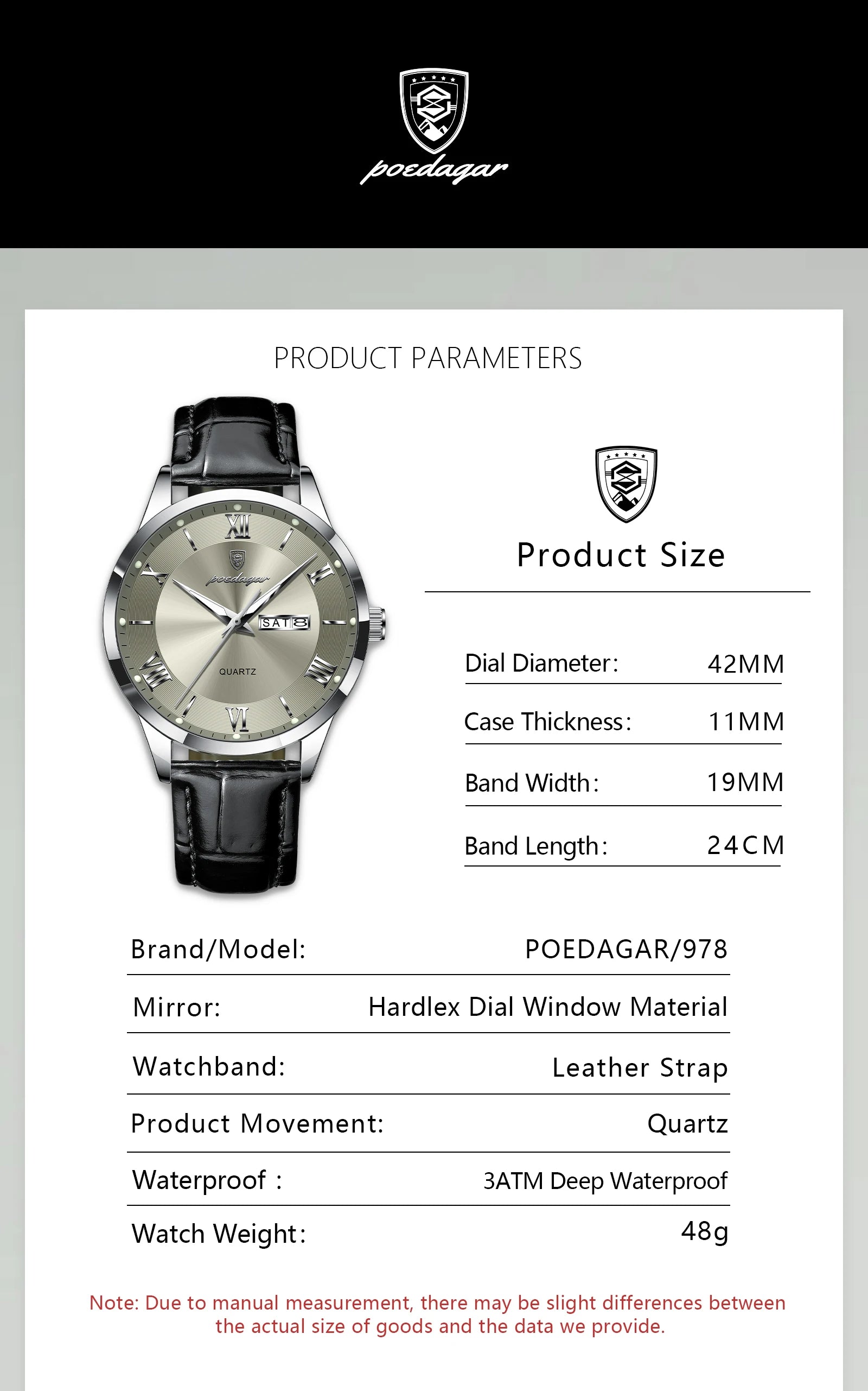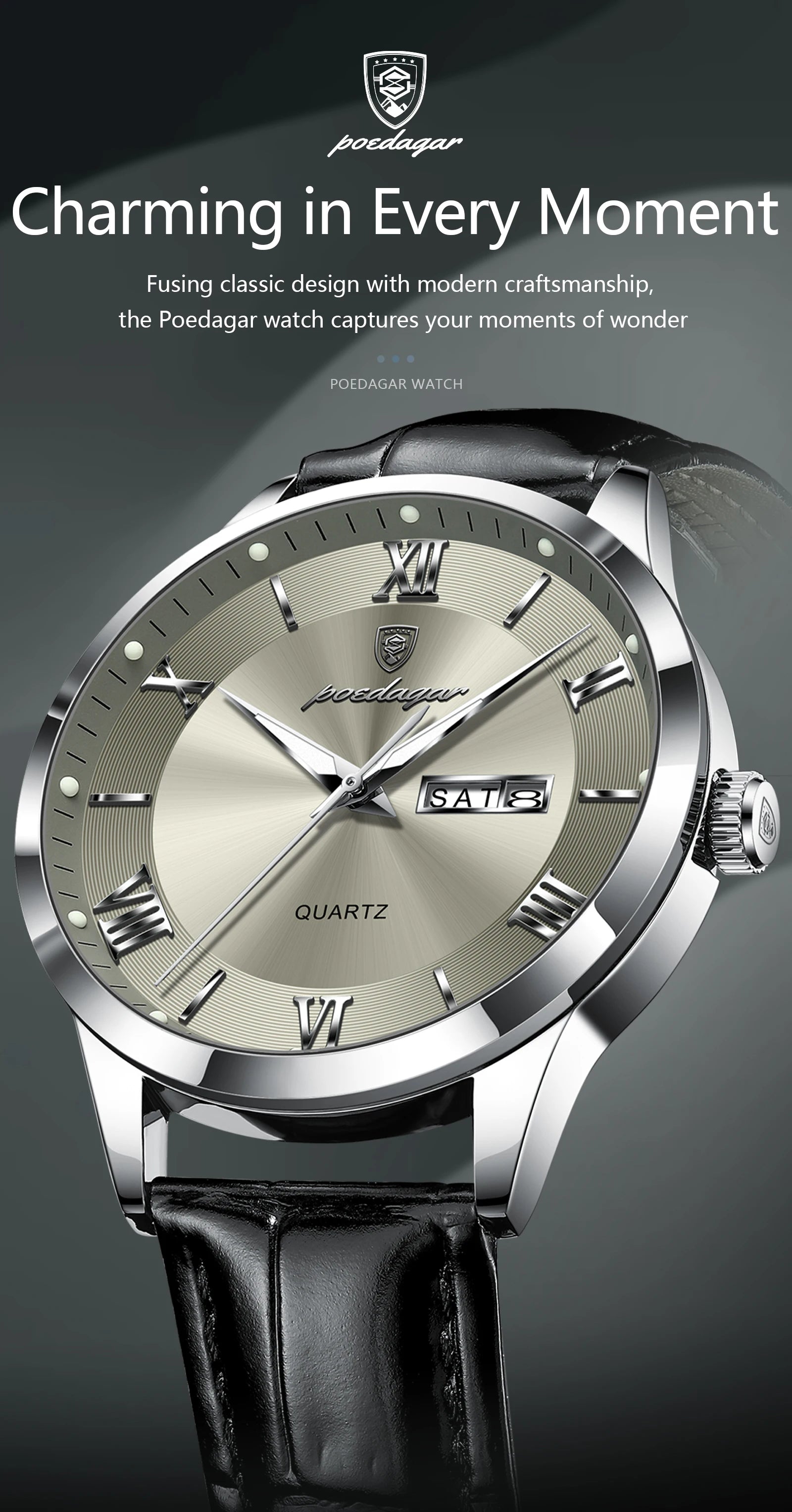 POEDAGAR Top Luxury Men Military Waterproof Luminous Date Week Man Wristwatch