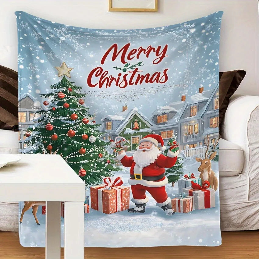 Santa's Festive Winter Wonderland: Christmas Blanket with Tree, Reindeer & Gifts